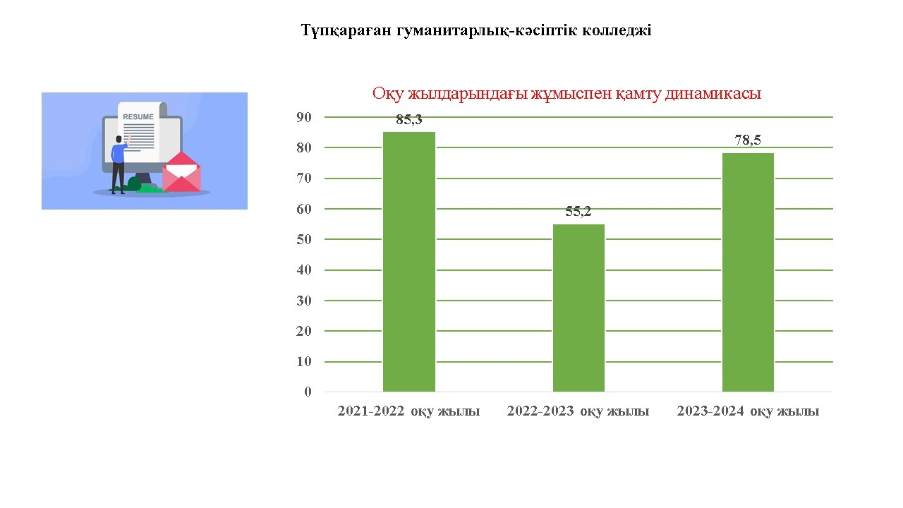 Оқу жылы түлектер жұмысқа орналасқаны (Саны) жұмысқа орналасқаны (%) 2021-2022 64 56 81,3 2022-2023 67 41 55,2 2023-2024 45 33 73,3 ...