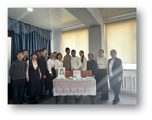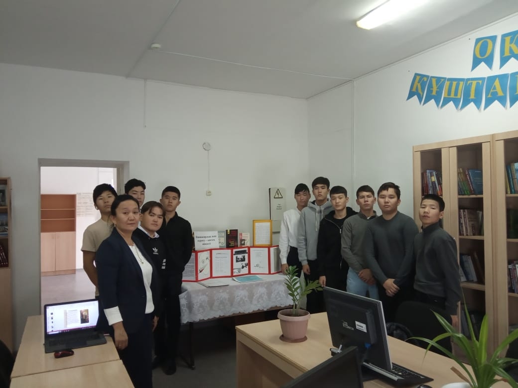 Қазақ тілі мен әдебиеті пәнінің оқытушысы А.Байболаева мен кітапаханашы Ж.Доғдырбаеваның ұйымдастырумен қазақ әдебиетінің көрнекті жазушысы, ақыны, драматург, қазақ әдебиетін қалыптастырушылардың бірі Бейімбет Майлинниң туғанына 130 жыл толуына орай "Бейімбет...